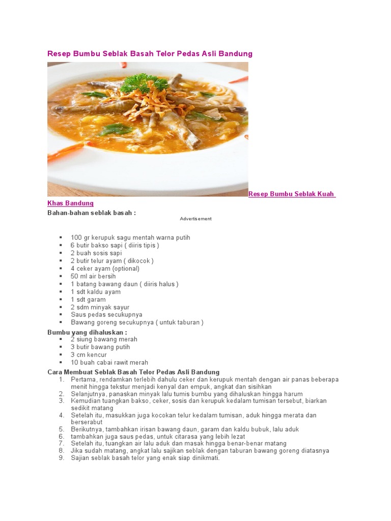 1205 resep masakan rumahan yang mudah dan enak. Lihat juga resep seblak mie kuah mie kuah seblak enak lainnya. Resep seblak basah bandung variasi camilan sederhana dengan khas bumbu bercita rasa pedas kita dapat memilih kreasi cara membuat seblak bandung yang satu ini.