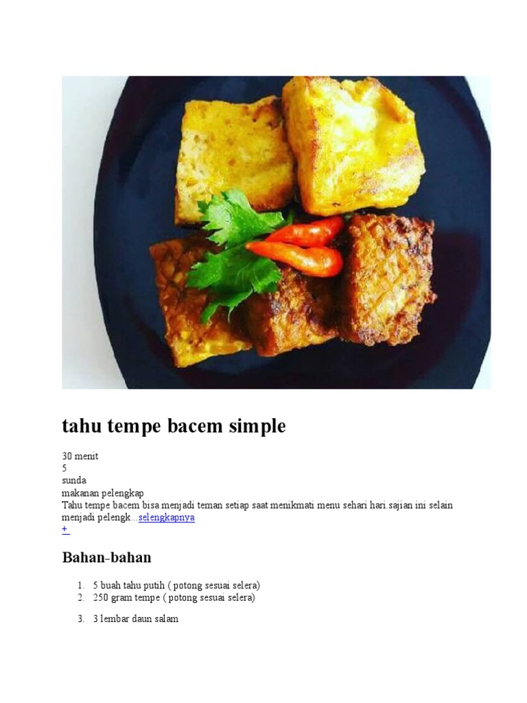 Rasanya yang manis terbikin dari gula merah dan pastinya ada beberapa bahan lainnya yang menjadikannya disukai seluruh kalangan terutama anak anak. Resep tempe bacem paling teruji. Tempe bacem adalah lauk sederhana yang mudah dibuat.